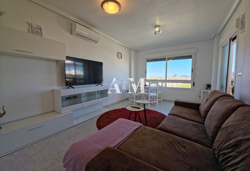 Le ofrecemos alquiler de este bonito ático ubicado en una residencial cerrada y privada en Orihuela Costa, Lomas de Campoamor. Muy luminosa, en buen estado, amueblada y equipada, aires acondiconados. Ático de Tercera plata con terraza y las vistas abiertas. Total de 108m2 con 2 dormitorios, 1 baño completo y 1 aseo, salon-comedor con cocina americana y lavadero. Residencial provada con piscina comunitaria, zonas verdes y garaje.