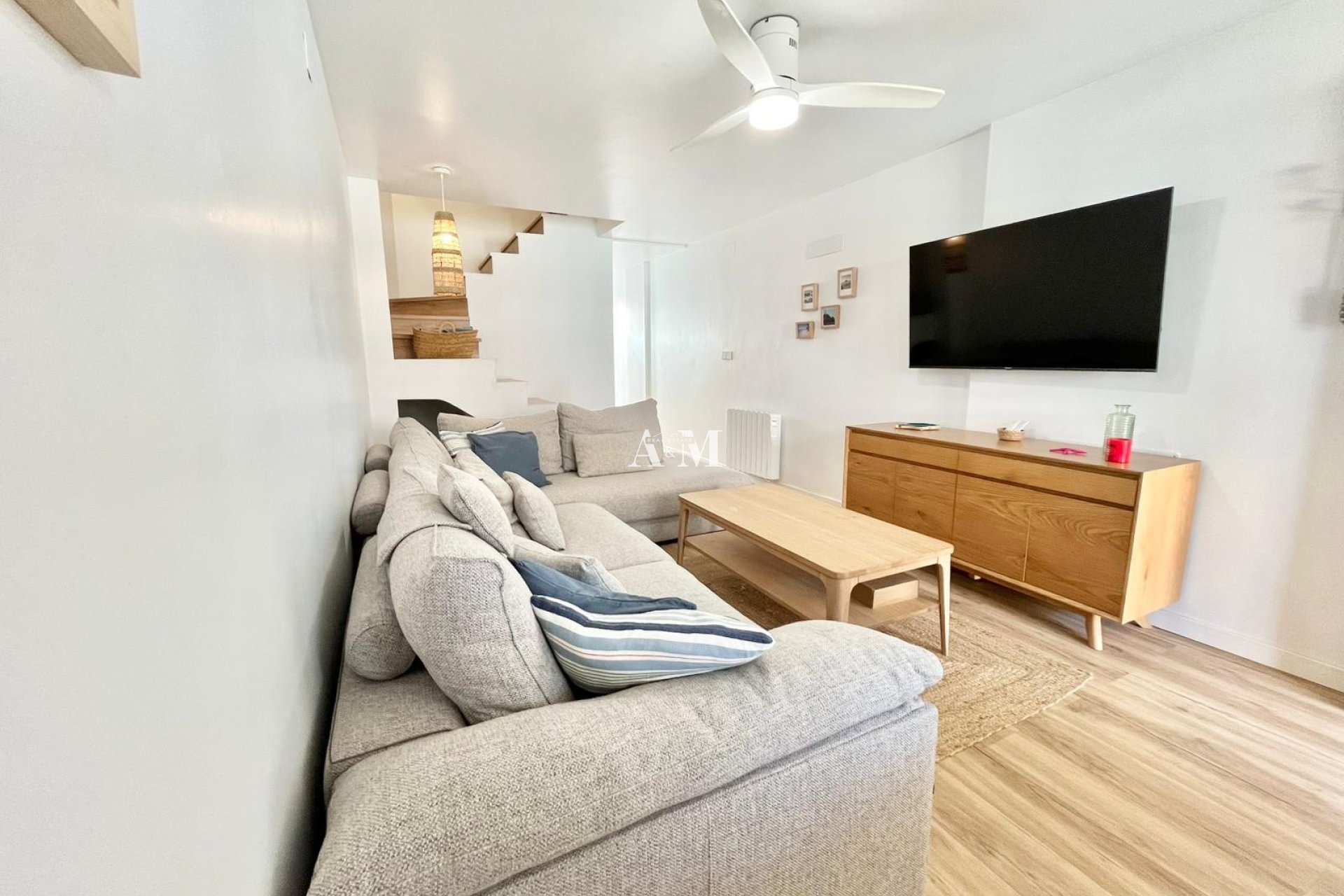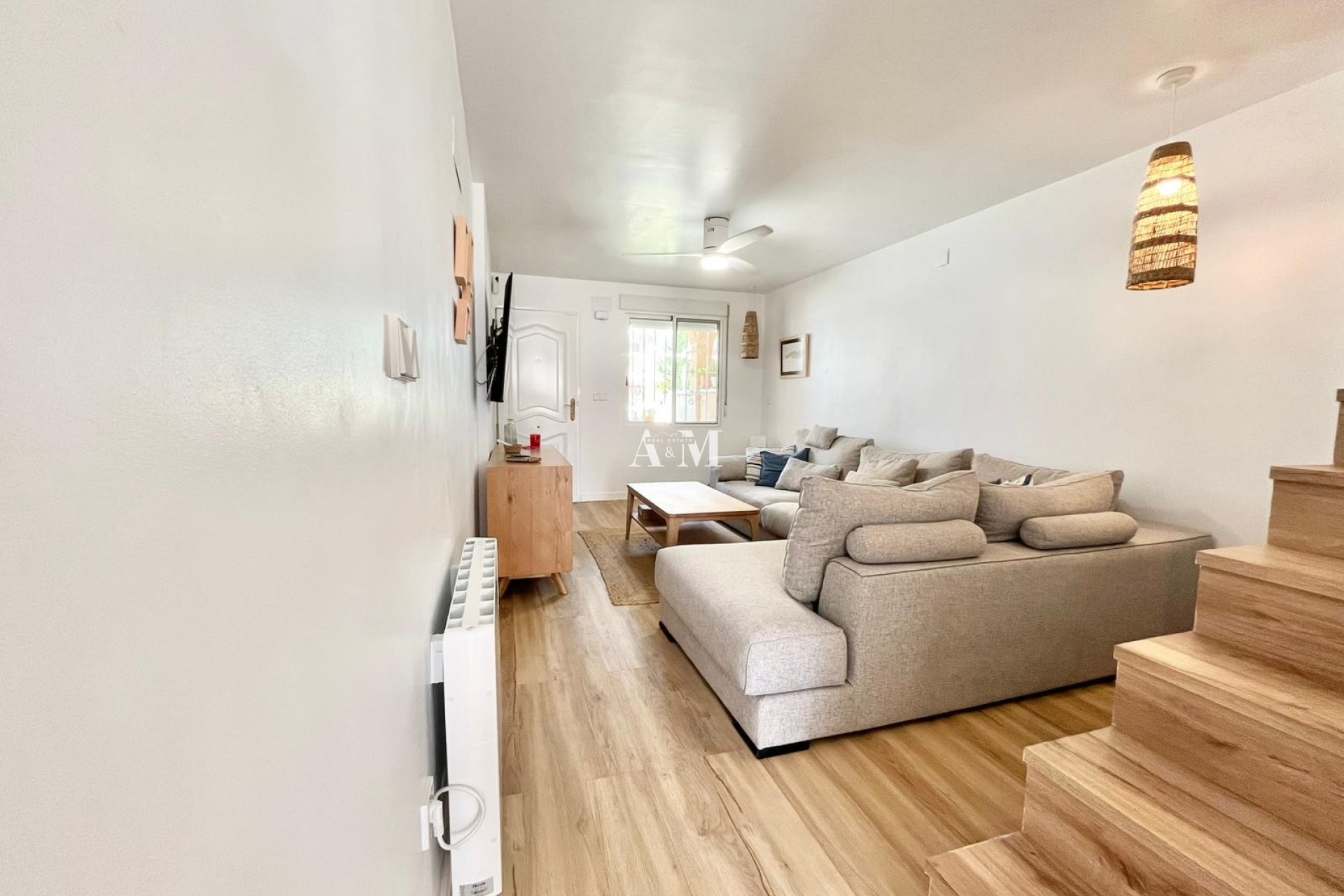 Just 100 meters from Tamarit Beach in Santa Pola and a stone's throw from shops and services... we offer this beautiful townhouse for long-term rental! The house has been completely renovated and its south-facing orientation will allow you to enjoy sunny days on the front terrace. It is ready to move into, equipped and furnished, with air conditioning and radiator heating. It has 3 bedrooms (2 with balconies), 1 bathroom, and 2 bathrooms. It features a fully equipped kitchen and patio with barbecue, a living room with a porch, and a front garden. Private parking.