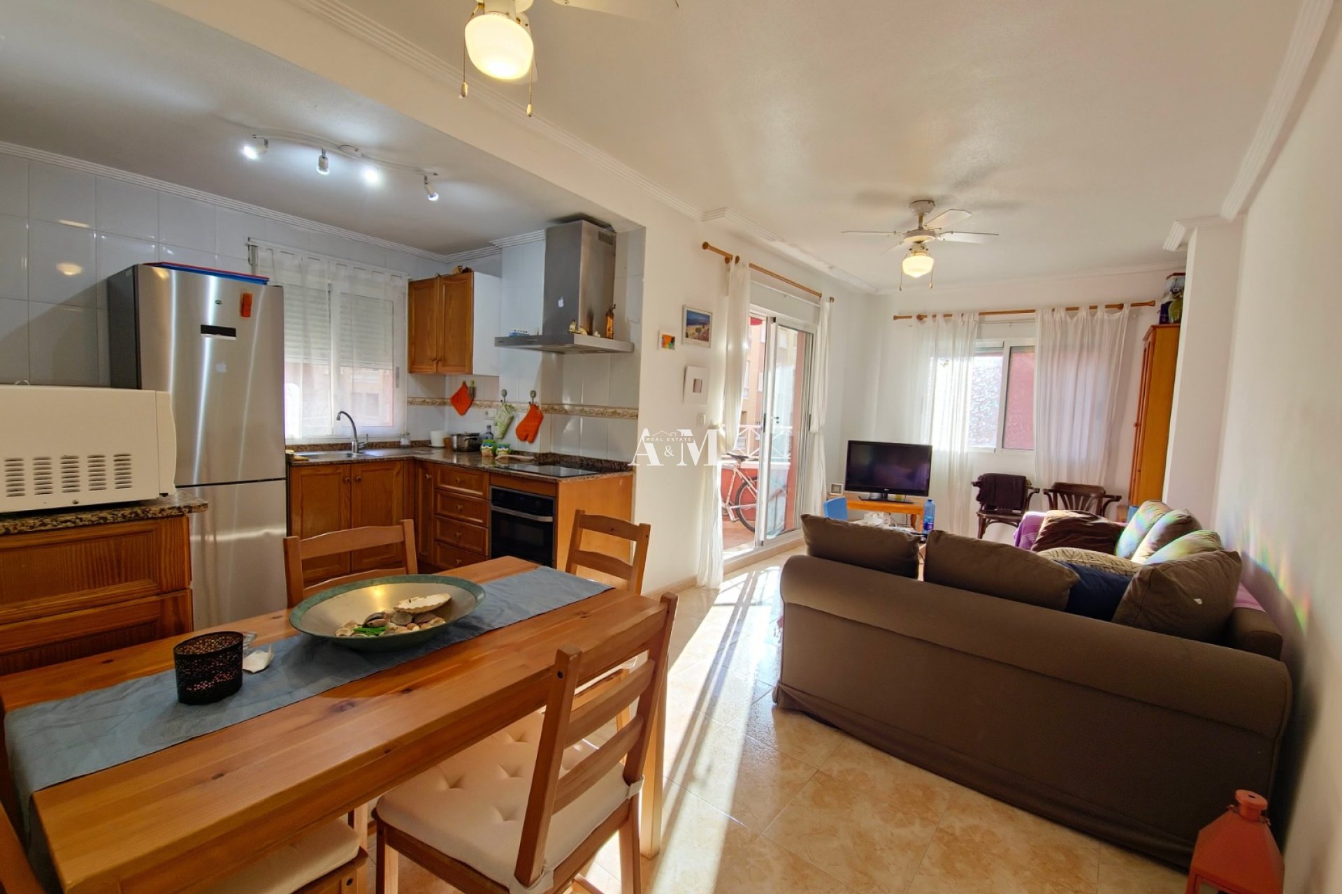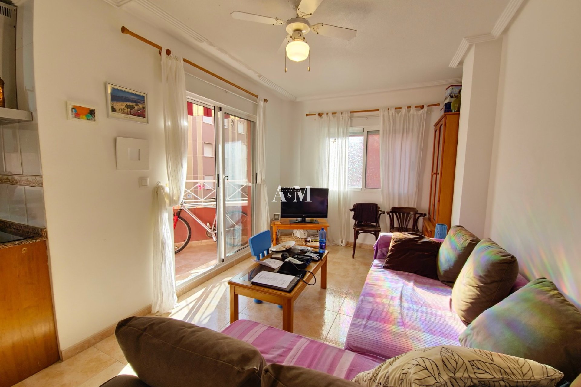 Perfect location, surrounded by all kinds of services and shops, several minutes walk to the central square of Torrevieja and across the street is the Park of Nations. Apartment with 2 bedrooms, 1 bathroom, living room and kitchenette, laundry room, balcony. Total area of 65m2. Furnished and equipped. Private residential with communal pool.