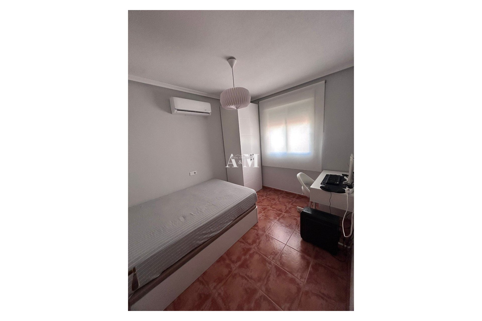 Big semi-detached house located outskirt of Elche, In a small area called Valverde, in the secluded residencial, yet close to shops and services, 10 minutes drive to the beaches of Santa Pola. The house has 171m2 and counts with 4 bedrooms, 2 bathrooms, wardrobe, independent kitchen, spacious living-dining area, covered porche, private jarden with smalll swimming pool and BBQ, terraces. The house is furnished and with electrical appliances. Air conditioners, basement.