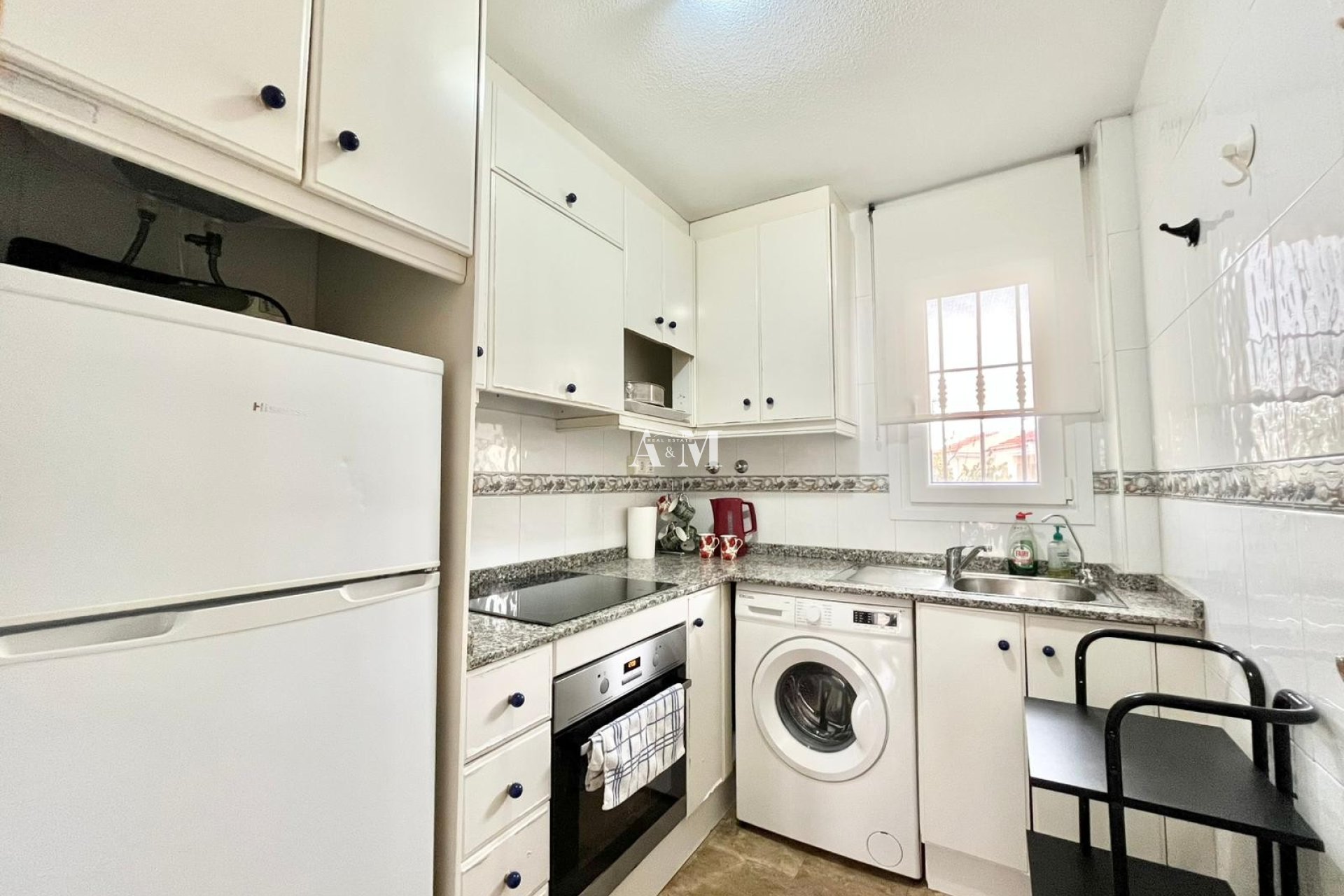 Это уютное бунгало расположено в одном из лучших районов Торревьехи. Оно расположено не в центре города, но рядом со всеми магазинами, кафе, ресторанами, банками, аптеками и т. д. Бунгало готово к заселению, оборудовано кондиционером, меблировано и оборудовано всем необходимым. Общая площадь бунгало составляет 60 м². В бунгало есть 2 спальни, 1 ванная комната, гостиная, кухня открытой планировки и просторная открытая терраса. Первый этаж без лифта. Общий бассейн.